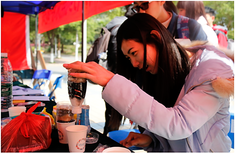 当日上午,活动主办方在二号食堂前的广场设点,布置场地。紧接着一系列宣传陆续展开,工作人员在发放传单的同时为同学们讲解相关知识,使同学们对水资源有更深入的了解。与此同时,引导同学们亲自动手做小实验,为节约水资源分享金点子,真正做到学以致用。此次活动加大宣传力度,引起同学们对水资源和环境保护的重视,达到活动的预期效果,加上同学们的积极参与,活动顺利开展。