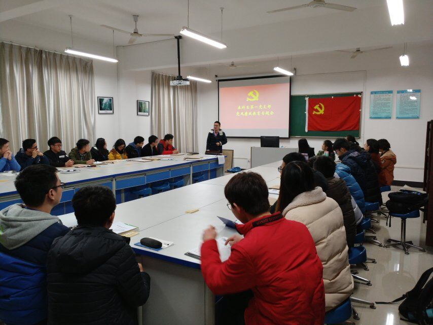 12月27日下午,为学习贯彻十九大精神,进一步深入开展党风廉政教育,beat365手机版官网入口本科生第一党支部在逸夫楼01414实验室召开了党风廉政教育专题会议。会议由支部书记吴田波主持,党支部全体党员参与此次会议。