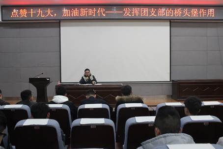为深入贯彻党的十九大精神,2017年12月22日21:30,我院于雁山校区逸夫楼01501学术报告厅开展以“点赞十九大,加油新时代——发挥团支部的桥头堡作用”为主题的报告会。此次会议由我院15级辅导员吴田波老师主持,我院15、16、17级各班团支书到场参加。