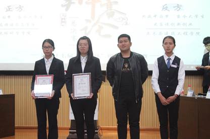 邓晴晴同学获得最佳辩手称号(左一为邓晴晴)
