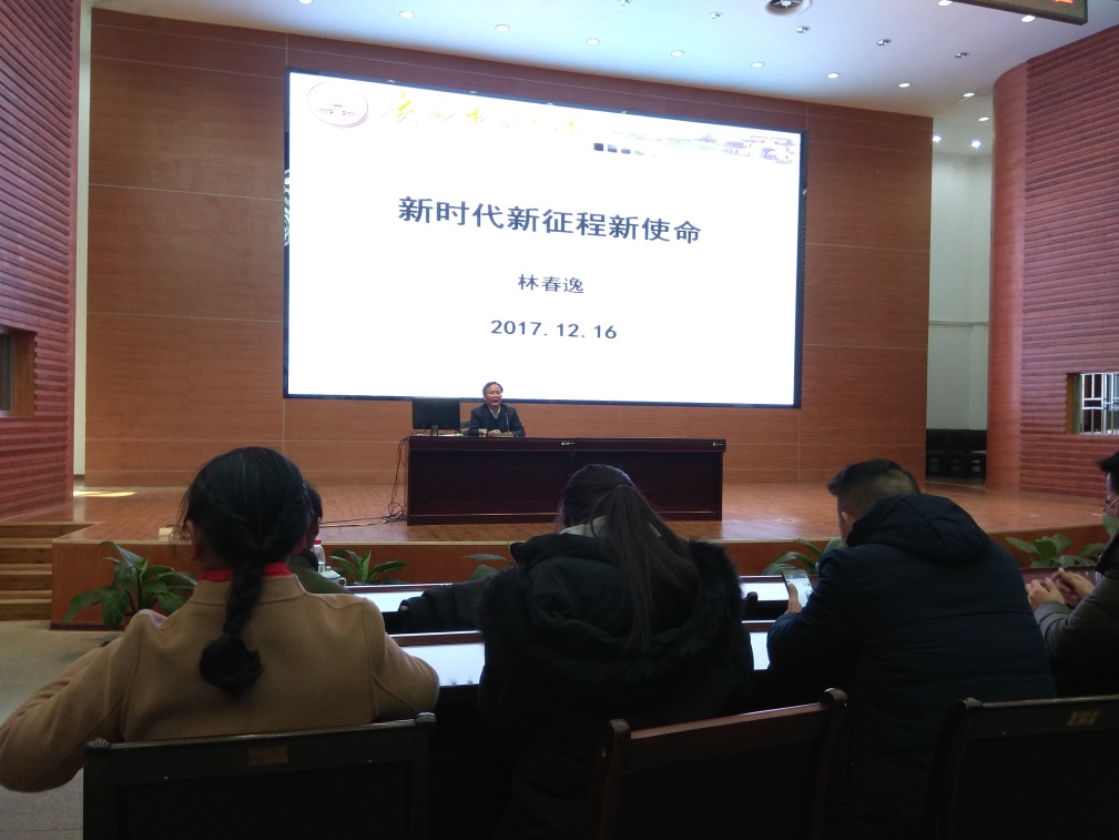 2017年12月16日下午,beat365手机版官网入口教工三支部党员集中组织参加学习了广西师范大学副校长、博士生导师林春逸教授所做的解读党的十九大精神专题报告会,主题为《新时代新征程新使命》。