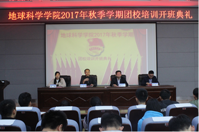 为全面贯彻落实团中央关于开展“青年马克思主义者培养工程”和“大学生骨干培养计划”的精神以及党的十九大相关精神。2017年11月12日12:30,我院于雁山校区逸夫楼01501报告厅举办2017年秋季学期团校培训开班典礼。本次开班典礼由团委书记蒋琼老师主持,我院党委书记姜子亮、党委副书记耿俊茂、15级辅导员吴田波出席本次开班典礼。