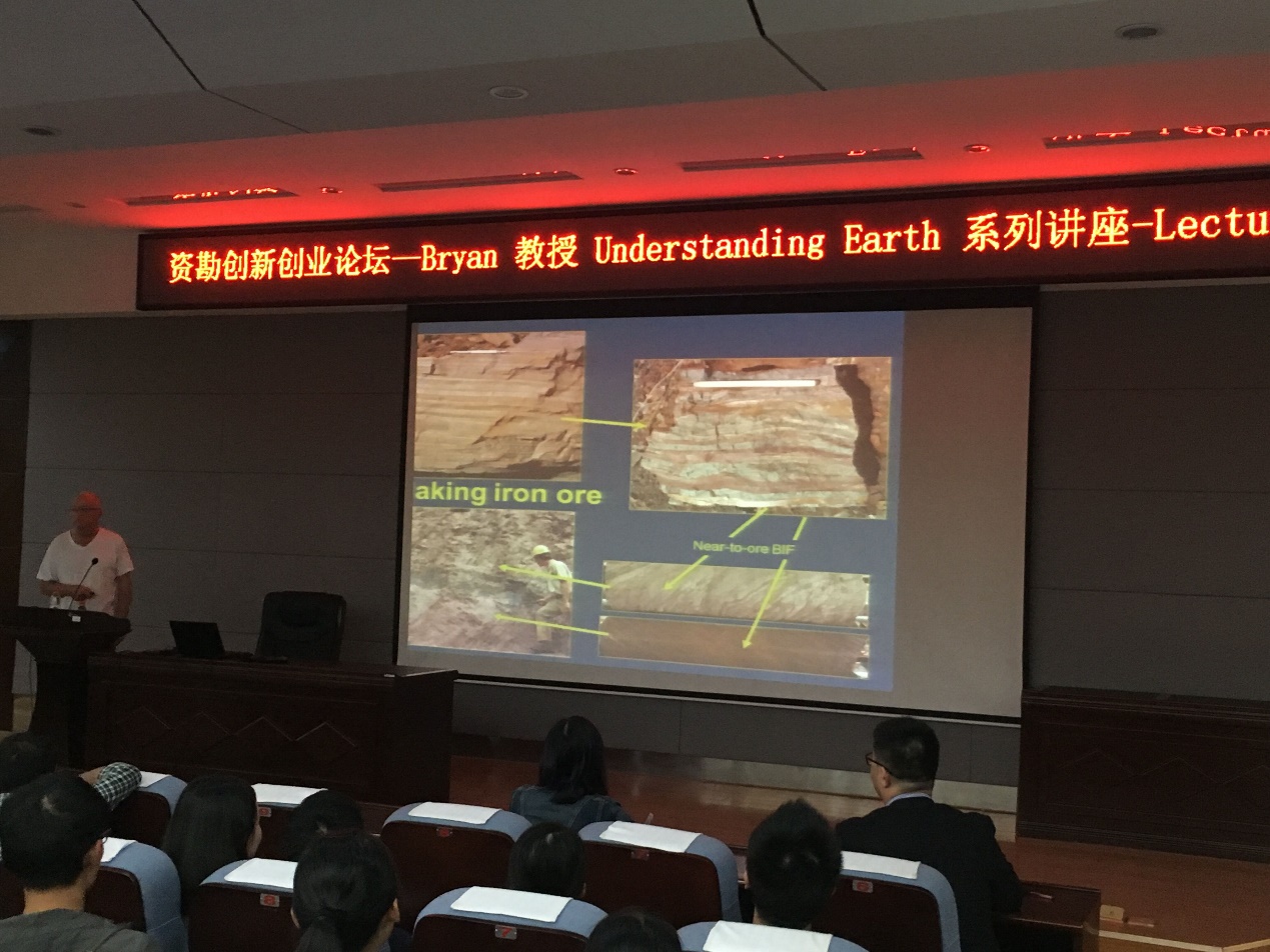 Bryan Krapež教授结合自身的研究方向,向学生们介绍了BIF(条带状含铁建造)中铁元素富集成矿的机理,以及断层对成矿所起的作用。报告结束后,Bryan Krapež教授与学生开展了热情的互动。通过讲座,加深了学生对BIF型铁矿的了解和认识,吸引了同学们对矿床成因学习的兴趣,期待下一次讲座。