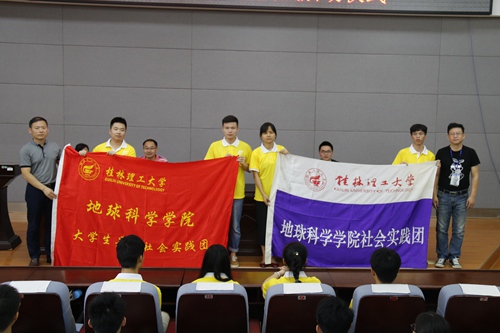 启动仪式在奏唱团歌中拉开帷幕,在宣读会议流程后,由15级辅导员吴田波为大家介绍学院“看世界”——赴俄罗斯乌里扬诺夫斯克国立技术大学交流学习,“看中国”——赴吉林大学交流学习和赴广东省金银珠宝检测中心社会实践,“看广西”——赴桂林市周边调研红色文化等四个社会实践项目概况。启动仪式中,志愿者代表周鹏同学上台发言,表示实践过程中不仅要留下脚印,还要挖掘真金。将秉承“厚德笃学,惟实励新”的校训,在实践过程中提高安全意识的同时,了解社会、发现新知、检验所学,全面提高自身素质和意志品质。