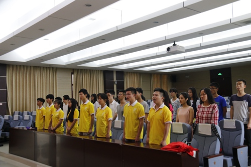 会议最后,姜书记和熊院长共同为实践团队进行授旗。伴随着全体起立合唱校歌的旋律中,启动仪式圆满结束。