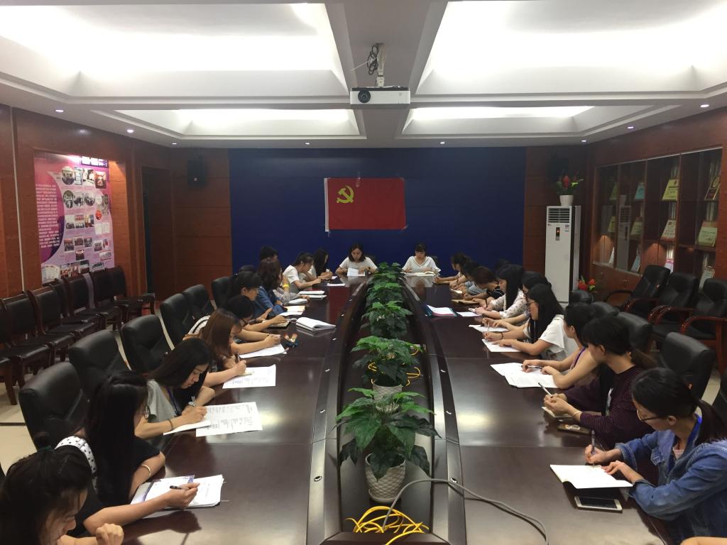 2017年5月30日,宝石第一党支部在逸夫楼01215召开深入学习贯彻习近平总书记在考察中国政法大学时的重要讲话精神学习讨论会。会议由党支部书记刘靖娜同志主持,支部全体成员参加了此次专题学习。