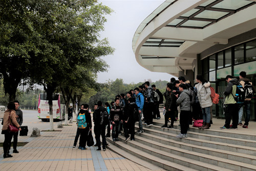 微风阵阵,考研的学子们即将奔赴考场。12月23日下午,在雁山校区二号组团食堂门口,学院党委副书记耿俊茂老师、学工组长兼13级辅导员王迎波老师和13级辅导员刘靖娜老师共同为学子践行。