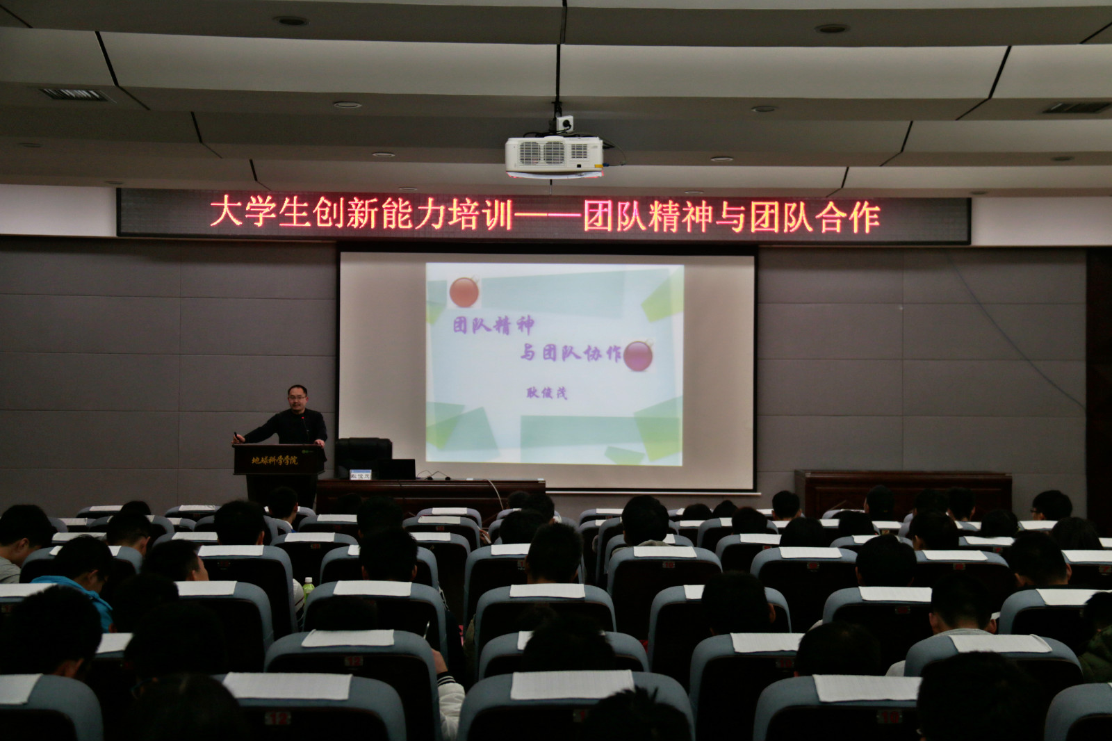 12月20日晚7:30,我院于01501报告厅召开了“大学生创新能力培训——团队精神与团队合作”主题专项讲座,讲座由耿俊茂书记主讲,地学院各班班干、各学生组织成员到场聆听。