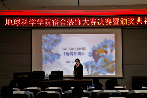 大赛在此次宿舍装饰大赛的宣传视频中拉开帷幕,接着各入围决赛的宿舍代表依次上台进行宿舍装饰展示。依托PPT的展示,观众们看到每个参赛宿舍的热情和创意,通过整理宿舍、装饰宿舍、发挥创意,把单调的宿舍变得独一无二,培养了舍友之间的情谊,达到了开展宿舍装饰大赛的初衷。在决赛的尾声,由主持人公布了各个宿舍的最终得分,最终角逐出一等奖一名、二等奖两名、三等奖两名和优秀奖三名。最后,学院党委副书记耿俊茂老师在致闭幕词中指出宿舍是大学的一个生活基础单位,以宿舍为单位的比赛有利于生活氛围的融洽,希望获奖宿舍能保持好这一份热情,形成辐射作用,带动社区的良好发展。