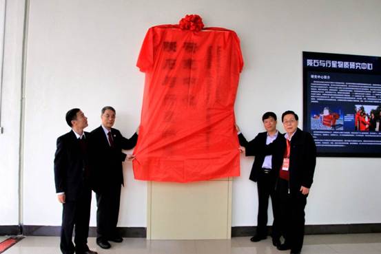 欧阳自远院士(右一)、何继善院士(左二)、解庆林教授(右二)、熊彬教授(左一)揭牌