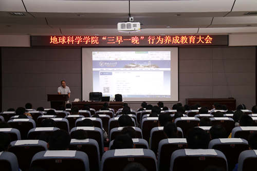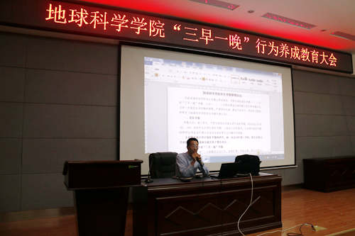 10月12日19:00,为贯彻落实学校相关部署,加强学风建设,及时整肃“三早一晚”出现的不良迹象,促进学生成长成才,beat365手机版官网入口于雁山校区逸夫楼01501报告厅召开“三早一晚”行为养成教育大会。大会由学院党委副书记耿俊茂老师进行主讲,相关学工老师与会,大一、大二全体500多名学生接受教育。