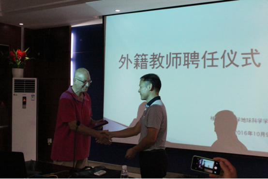 为积极响应和进一步推进学校办学国际化的发展战略,地学院稳步实施“走出去、引进来”师资建设计划。加强我院师资队伍建设,学习和吸收国外先进教育理念和教学方法,提高教学与科研水平,于10月9日,我院隆重举行了办外教聘专家聘任仪式,熊彬院长代表学院为来自澳大利亚科廷大学的Bryan Krapež教授颁发了聘书。