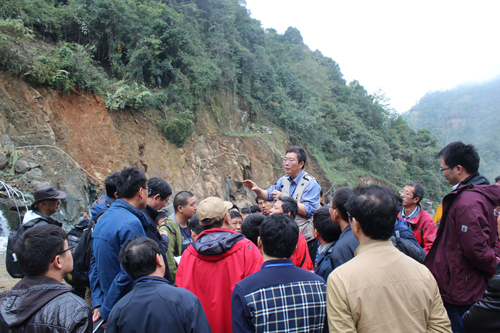 11月21日-23日,我校主办的“华南新元古代构造演化学术研讨会”的参会代表一行70余人,赴“桂林—三江—龙胜桂广滑石矿—融水县月亮湾翁牛采石场—融水—桂林”三日二晚的野外地质考察及现场学术讨论与交流活动圆满结束。