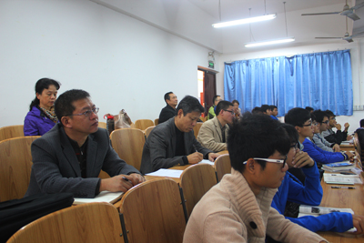 11月21日上午,冯佐海院长、姜子亮书记等院领导及有关教师在雁山校区07120教室听取了张青伟老师讲授的《基础地质学》课程。课后就张老师的课堂教学内容、多媒体运用、课堂秩序、教学效果等方面进行了认真讨论。