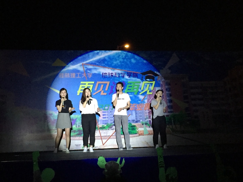 5月27日晚,我院于雁山校区二号组团篮球场举行2016年“再见说再见”毕业主题晚会。学院党委书记姜子亮、教育部工程中心实验室副主任吕玉增、院长助理陈宏毅以及学工办老师、班主任、专业老师等与广大同学们共聚晚会现场。