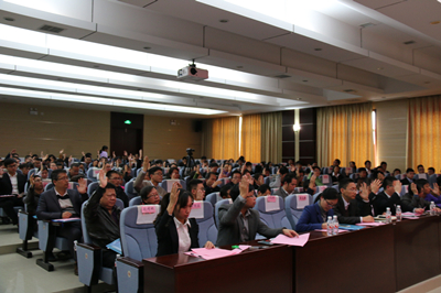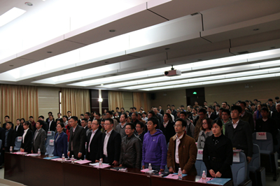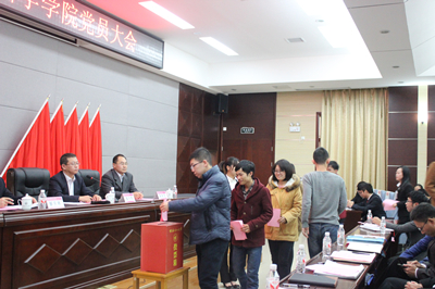 2015年11月26日下午14:30,中共桂林理工大学beat365手机版官网入口党员大会在雁山校区逸夫楼01501报告厅顺利召开。学校校长、党委副书记解庆林,学校党委组织部副部长白凌婷出席了本次大会,学院党委书记姜子亮,党委副书记耿俊茂,副院长熊彬列席了大会,全院师生党员参加了本次大会。