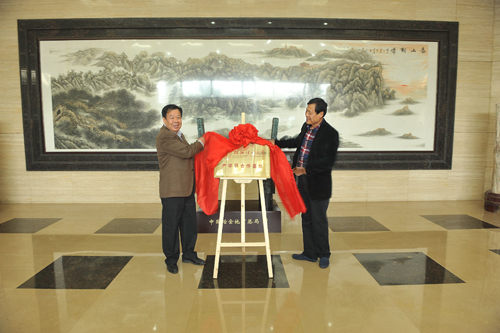 梁福沛副校长(左)与中国冶金地质总局山东局郑明坤副局长(右)为基地揭牌