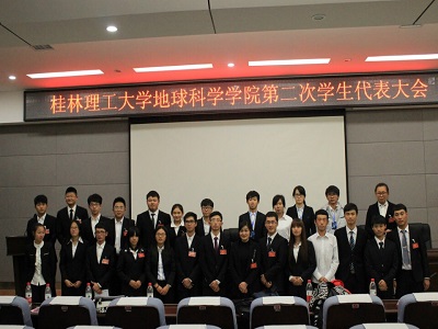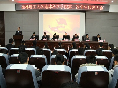 2014年12月6日下午14:40,桂林理工大学beat365手机版官网入口第二次学生代表大会在逸夫楼01501报告团厅召开。我校团委书记周国桥,我院党委副书记耿俊茂、团委书记蒋琼、学工组长王迎波,以及校学生会副主席范可、各学院代表和我院两百余名学生代表参加了本次会议,会议由大会秘书长颜培天主持。