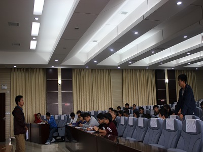 为了丰富课余生活,鼓励大学生强身健体,响应“走出宿舍,走向操场,走下网络”的号召,2014年11月28日中午12:10,地学院足球赛承办竞标大会在逸夫楼01501会议室召开。学院学生会主席团成员、体育部成员、各专业代表及竞标班级代表参加了本次会议。主席团成员担任竞标大会评委。大会由体育部部长王旭主持。