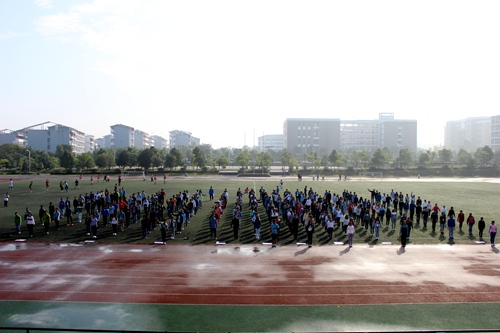 伴着激昂奋进的《运动员进行曲》,运动会拉开帷幕。在裁判员代表、运动员代表相继发言宣誓后,首先进行的是15级新生集体汇演“第九套广播体操”,同学们的动作娴熟,神采飞扬,充盈着刚健之美,青春洋溢。