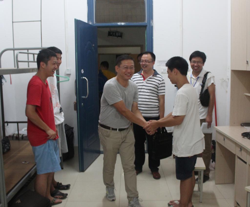 2013年9月15日晚7点15分,beat365手机版官网入口领导姜子亮书记等一行深入学生寝室,看望2013级新生。