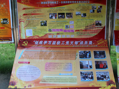 为深入贯彻落实党的十八大精神,学习学校基层党建示范点和优秀党支部创建活动在创建工作中取得的典型经验,我院于6月28日--7月7日期间,组织我院学生分别在雁山校区、屏风校区参观基层党建示范点和优秀党支部创建成果展活动。