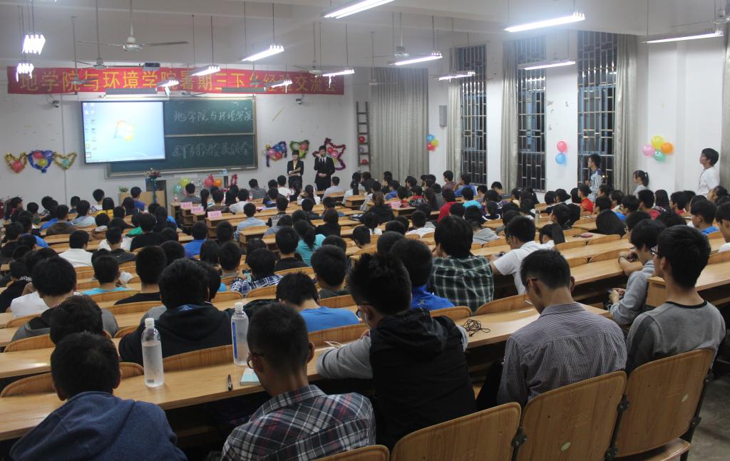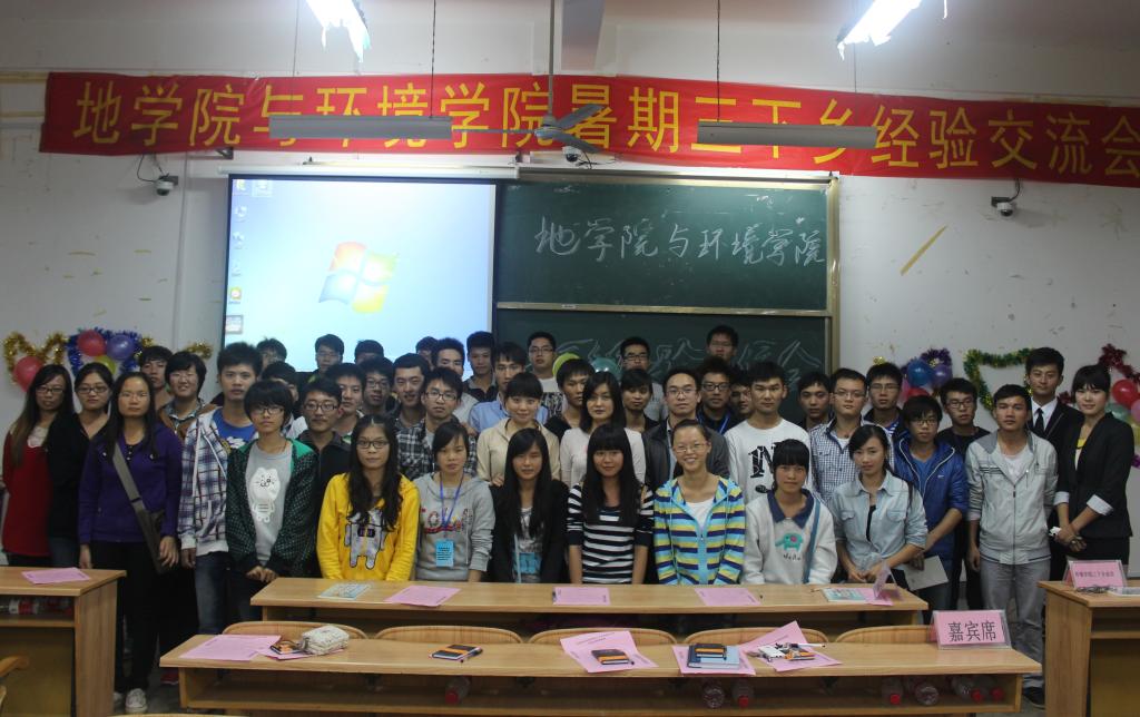 2013年11月2日晚7:30,地学院、环境学院三下乡交流会在雁山校区06408教室举行。我院团委书记蒋琼老师、环境学院唐红兵老师出席本次会议,并致辞。