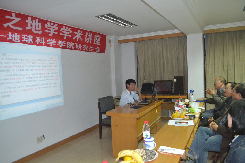 会上,首先由学院副院长王有学教授致开幕词,他希望同学们此次活动中能够受到启发有所收获,并预祝本次活动取得圆满成功。接着,我院四名研究生分别从地球化学、地球物理、岩石学、环境矿床等地学不同领域为就自己近期的研究成果同与会专业老师和研究生同学们进行了学术交流。胡云沪老师、刘战庆老师及王有学副院长分别对展示交流的同学从不同角度提出了问题,给出了建议。研究生同学们在解答问题的过程中深受启发。交流现场讨论热烈,活动结束后师生们就所关心的地学问题进一步展开了学术探讨。