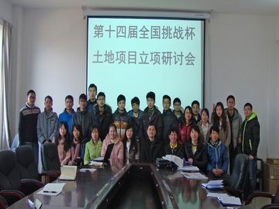 2014年1月14日中午12点半,参加第十四届“挑战杯”全国大学生课外科技活动竞赛的立项小组在雁山校区地学院三楼会议室,进行了工作汇报,这个项目由韦龙明教授指导,以资规专业为主的同学参加。