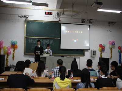 为了进一步加强学风建设,促进学生在校期间的学习和班级凝聚力的形成,营造良好的学习氛围,4月15日晚19时30分,地学院12、13级班级PPT风采大赛决赛在06105举行,参加本次比赛的嘉宾有学院党委副书记耿俊茂老师,团委书记蒋琼老师,13级辅导员刘靖娜老师,学院主席团成员以及其他学院新闻部部长。