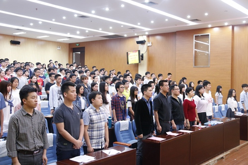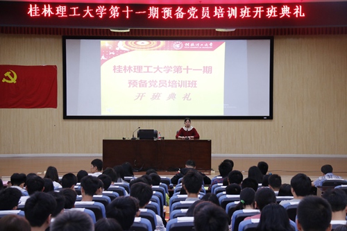 随着国歌嘹亮,开班典礼在全体起立合唱中拉开帷幕。开班致辞中,机械与控制工程学院党校副校长、党委副书记邓洁琼同志在祝贺本次党校培训班顺利开班的同时,在对学员们提出要求中指出,一是提高思想认识,深刻理解预备党员培训的重要性;二是珍惜培训机会,结合目前全党开展的“两学一做”学习教育,真正做到学有所思、学有所悟、学有所获;三是严格遵守培训班的各项规定,确保培训效果。随后由理学院团委书记单江涛同志和测绘地理信息学院教务员夏永超同志分别进行宣读《桂林理工大学第十一期预备党员培训班方案》和作培训要求讲话。