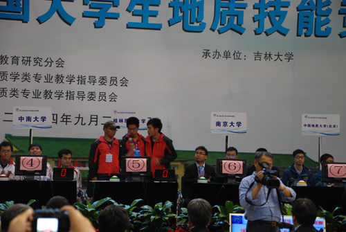 全国大学生地质技能竞赛是由中国地质学会、中国地质学会地质教育研究分会、教育部高等学校地质学类专业教学指导委员会、教育部高等学校地质类专业教学指导委员会联合主办,吉林大学承办。竞赛旨在激励大学生学习和运用地学知识的积极性和创造性,推动高等学校地学教学体系、教学内容和教学方法的改革,不断提高地学人才培养质量。随着竞赛的不断深入,竞争也越来越激烈。北京大学、南京大学、中南大学、中国地质大学、中国矿业大学、中国石油大学、中山大学和成都理工大学等来自全国52所院校、141支代表队的420多名选手参加了本次竞赛。