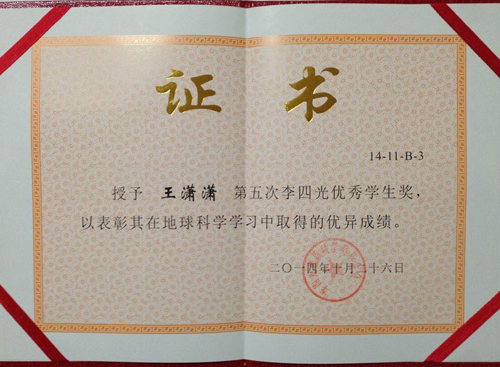 本次李四光优秀学生奖共有3人荣获李四光优秀博士研究生奖,5人荣获李四光优秀硕士研究生奖,5人荣获李四光优秀大学生奖。