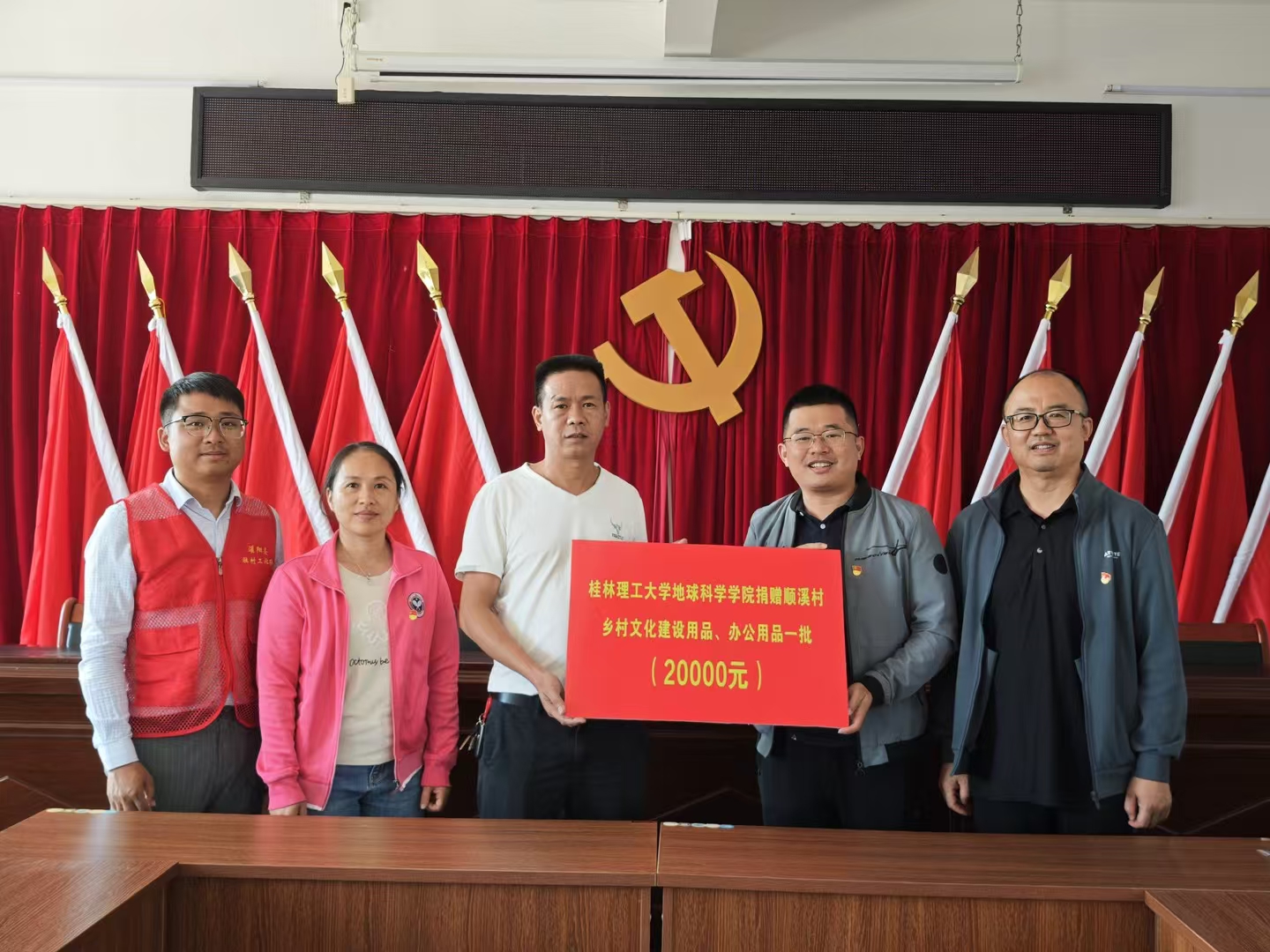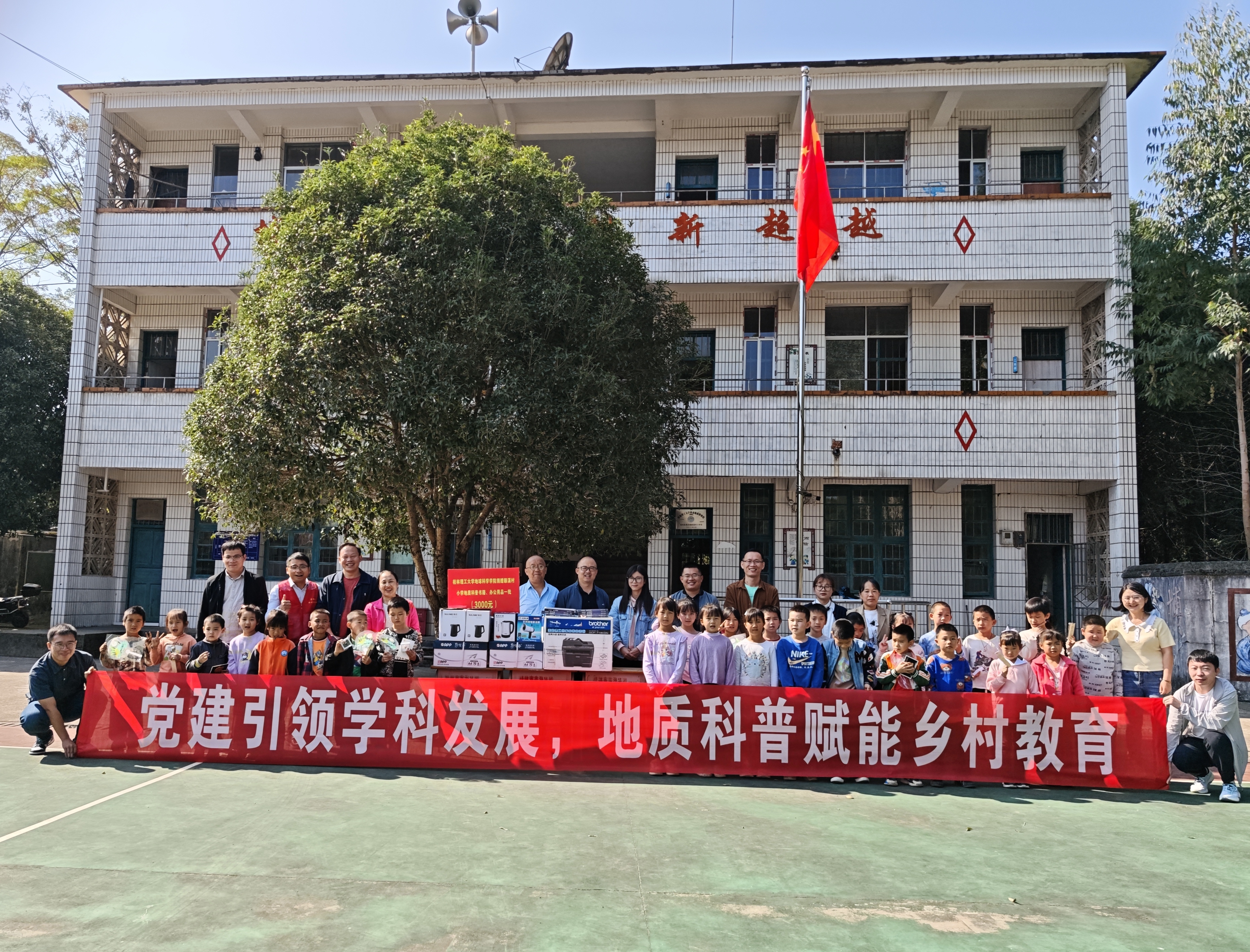 在顺溪村,学院领导班子与顺溪村党支部开展对口帮扶乡村振兴座谈会。会上,学院领导班子认真听取了我校驻顺溪村第一书记、学院学工组组长陈文甫的工作汇报,并围绕顺溪村发展规划、产业布局、党组织建设等方面与村“两委”进行深入交流。学院党委书记陈小波代表学院向顺溪村“两委”对学院教师、驻村干部陈文甫的关心支持表示感谢,表示将大力支持顺溪村的产业发展,推进定点帮扶和结对共建。会上还举行了定点帮扶灌阳县顺溪村“百项行动”捐赠仪式和学院结对帮扶干部助力灌阳“百名学子圆梦计划”助学金捐赠仪式。会后,学院领导班子对顺溪村产业项目进行了调研走访。学院教师马强分为顺溪小学的孩子们带来了一场生动的地质知识科普活动。