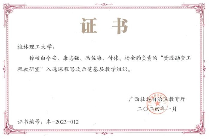 学院资源勘查工程教研室入选2024年自治区课程思政示范基层教学组织