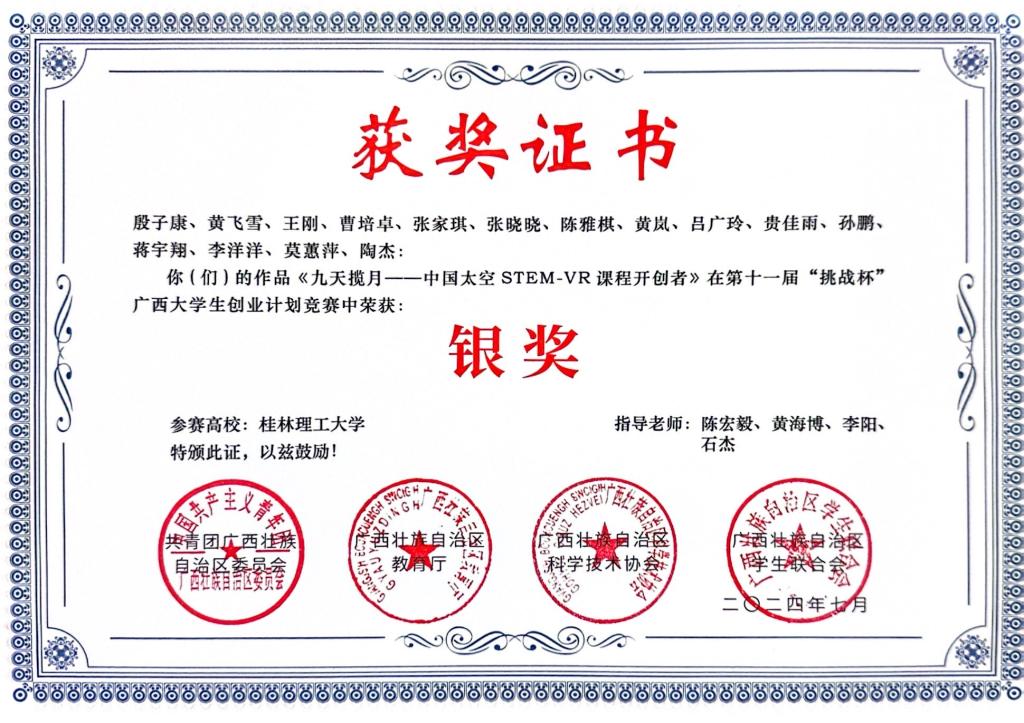 荣获第十一届“挑战杯”广西大学生创业计划竞赛银奖