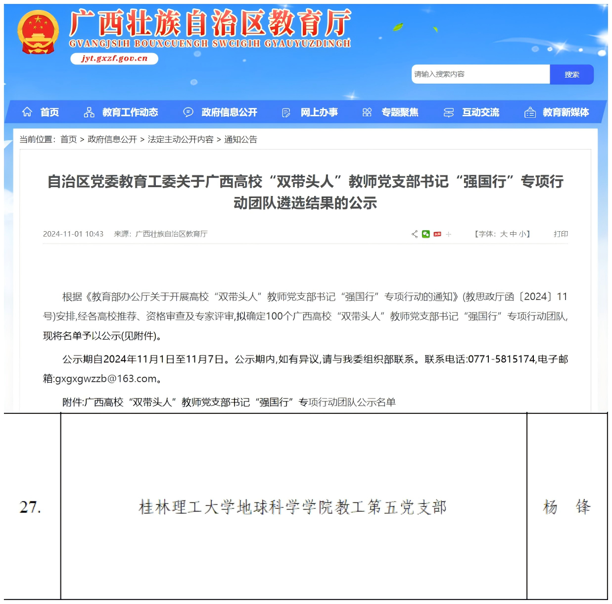 学院教工第五党支部入选广西高校“双带头人”教师党支部书记“强国行”专项行动团队