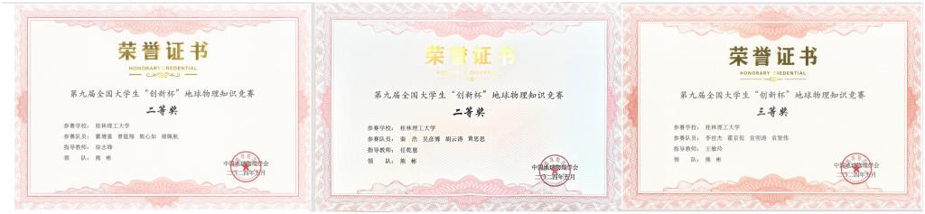 荣获第九届全国大学生“创新杯”地球物理知识竞赛二等奖2项、三等奖1项
