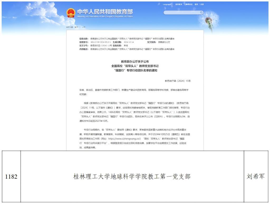 旗帜鲜明坚持党的领导,党建引领激发新活力。持续完善“1219”地学党建工作体系和“一体两翼三维度”地学党建双创工作模式,扎实开展“五基三化”深化年行动。新增全国党建工作样板支部培育创建单位1个,全国、全区高校“双带头人”教师党支部书记“强国行”专项行动团队各1个。1篇论文和1个案例分别获评全区教育系统推进党建与事业发展“一融双高”优秀党建研究论文和创新典型案例二等奖。党建工作经验获中国教育报、全国高校思政网等新闻媒体报道。党管人才成效显著,认真落实学校“1+6+N”人才政策,多渠道引才育才。稳步推进宣传思想文化工作,创新组织开展地学文化节等师生文化活动,全力提振师生精气神;完成学院官网升级改造,优化官微建设,加强网络管理,完善融媒体矩阵。深入开展党纪学习教育,持续深入推进“清廉学院”建设,学院党员教师在第三届广西高校清廉学校建设高峰论坛征文中分别获一等奖1项、二等奖1项、优秀奖1项。