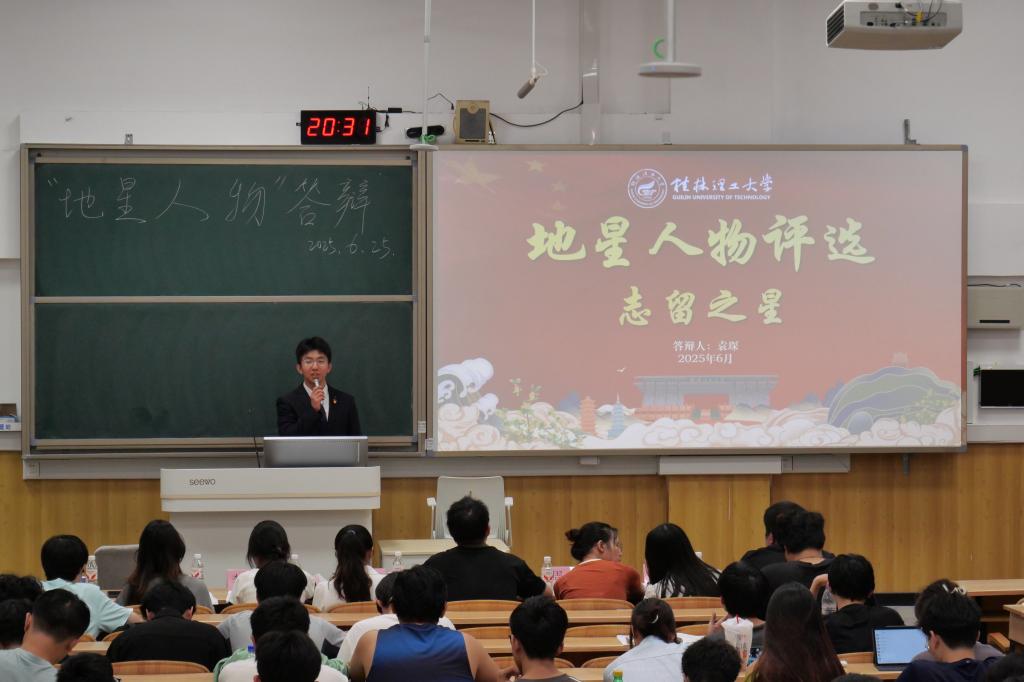 6月25日,beat365手机版官网入口2024-2025年度地星人物评选公开答辩会在桂林理工大学雁山校区励新楼207教室举行。学院团委负责人、辅导员老师及学生代表作为评委出席本次答辩会。
