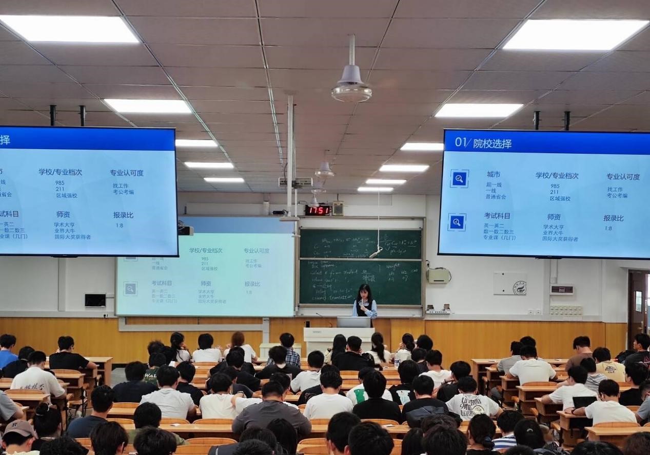 祁诚雪则围绕自身考研经历,分享诸多实用“干货”。她讲述克服备考困难的过程,重点介绍英语和政治复习策略,如英语词汇积累、真题研读,政治答题要点等。在复试方面,分享流程、面试技巧及展现个人优势的方法,还结合获自治区奖学金经历,鼓励同学们积极参与科研与竞赛,提升综合实力。
