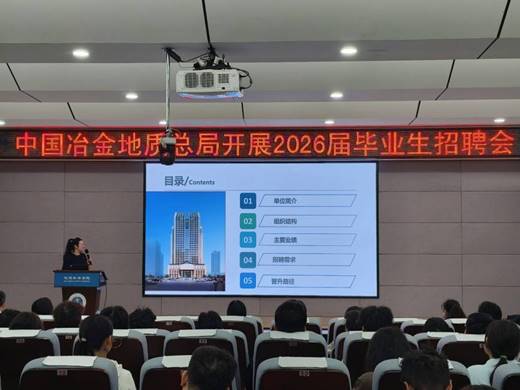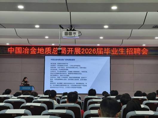 2025年10月25日上午,中国冶金地质总局2026届毕业生专场招聘会在我院雁山校区01501报告厅顺利举行。本次招聘会由我院与单位协同组织,旨在搭建优质就业平台,助力毕业生高质量就业,吸引了来自beat365手机版官网入口、测绘地理信息学院、环境科学与工程学院等100多名毕业生踊跃参与。