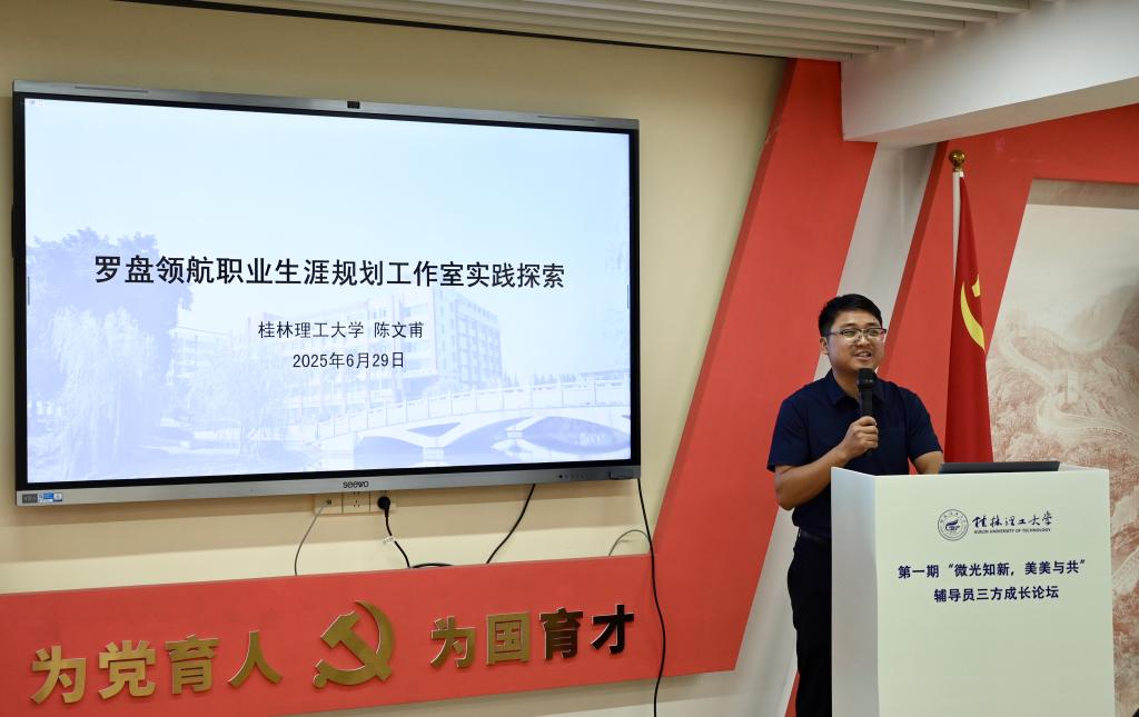 6月29日下午,桂林理工大学“罗盘领航”职业生涯规划工作室主持人陈文甫老师代表工作室受邀出席“微光知新 美美与共”辅导员三方成长论坛,并以《构建“三维四阶”生涯导航体系,赋能学生成长全程》为题,进行了工作室建设经验专题分享。