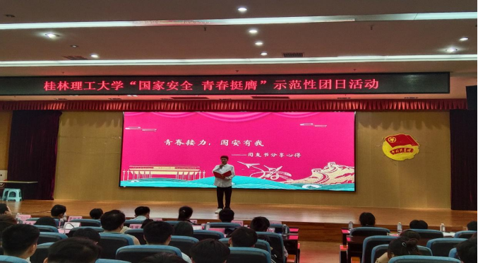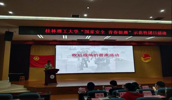 4月17日晚,beat365手机版官网入口在雁山校区图书馆报告厅组织开展“国家安全 青春挺膺”示范性主题团日活动,校团委副书记慕宗良、beat365手机版官网入口党委副书记唐丽华,校团委专职团干贾恒存、各二级学院专职团干、beat365手机版官网入口全体专兼职辅导员、学院学生团员代表等参加本次团日活动。