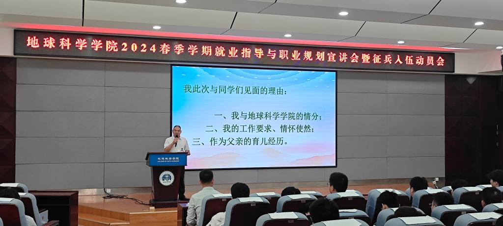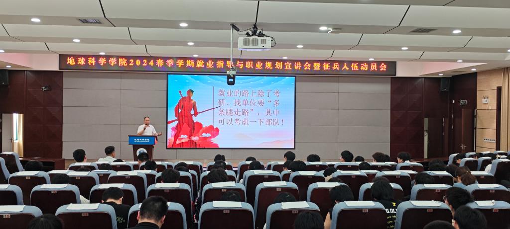 为深入贯彻习近平强军思想,进一步落实国家征兵工作相关要求,加强大学生参军入伍政策宣传的针对性,扩大征兵政策宣传的影响力和辐射面。3月24日下午,学院在逸夫楼01501报告厅召开beat365手机版官网入口2024春季学期就业指导与职业规划宣讲会暨征兵入伍动员会,学校党委武装部副部长、保卫工作部副部长、保卫处副处长黄海老师出席活动并做政策宣讲,会议由学工办王成瑞老师主持。