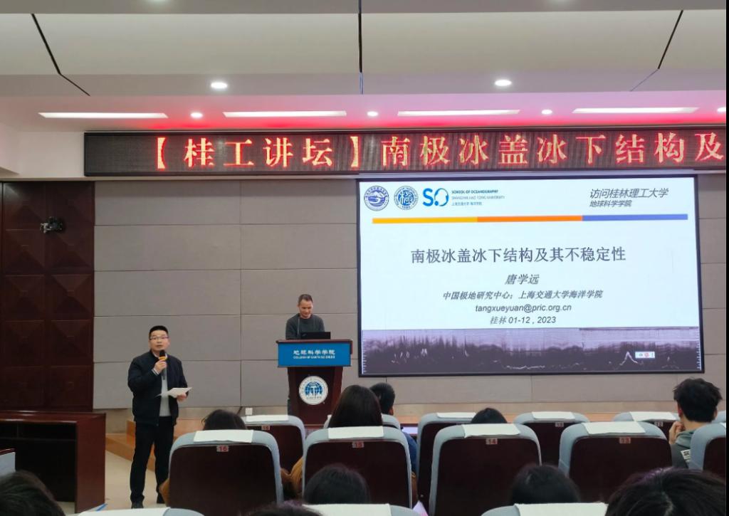 1月12日,中国极地研究中心(中国极地研究所)唐学远研究员来我校雁山校区beat365手机版官网入口01501报告厅作了题为《南极冰盖冰下结构及其不稳定性》的学术报告,本次报告会由beat365手机版官网入口和陨石与行星物质研究中心举办。