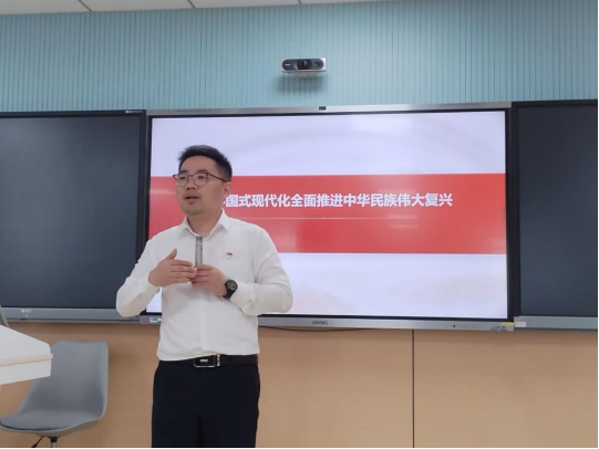 仪式结束后,学院团委书记吴田波老师进行了《以中国式现代化全面推进中华民族伟大复兴》的开班第一讲。