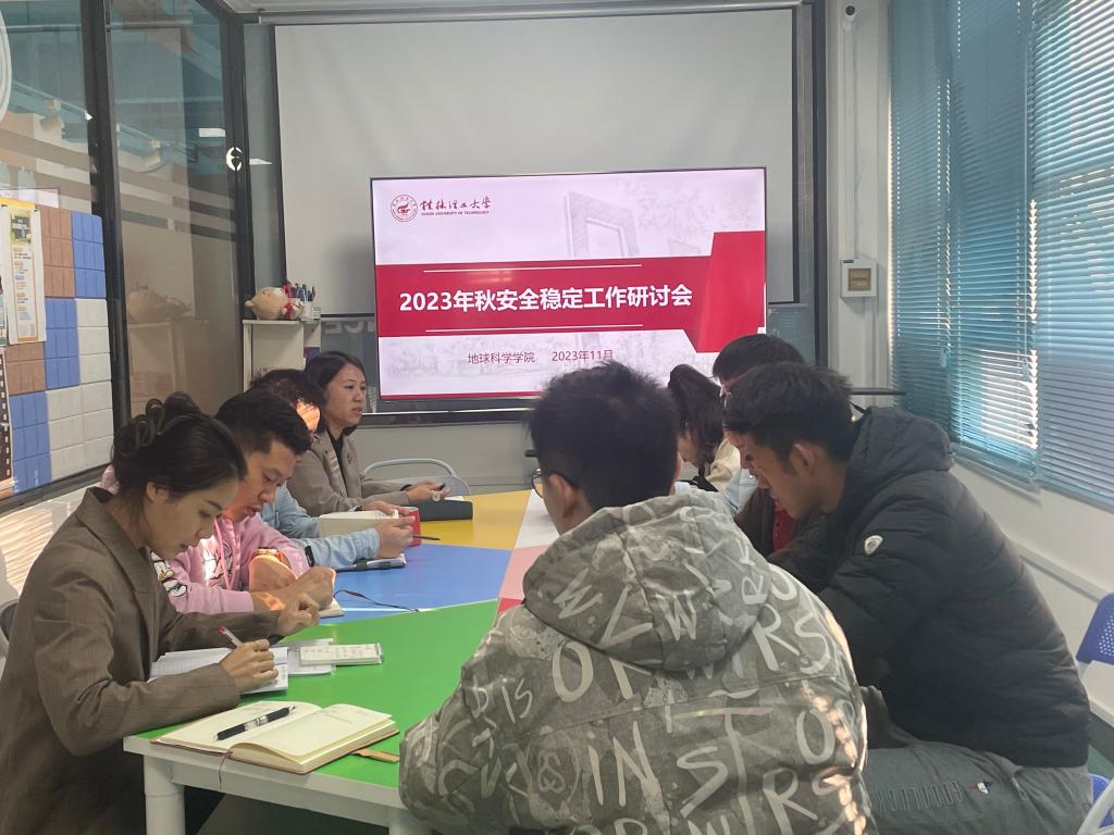 202311月17日,beat365手机版官网入口在逸夫楼二楼多功能会议室召开安全稳定工作研讨会,会议由党委副书记陶剑飞主持,全体专兼职辅导员参加。