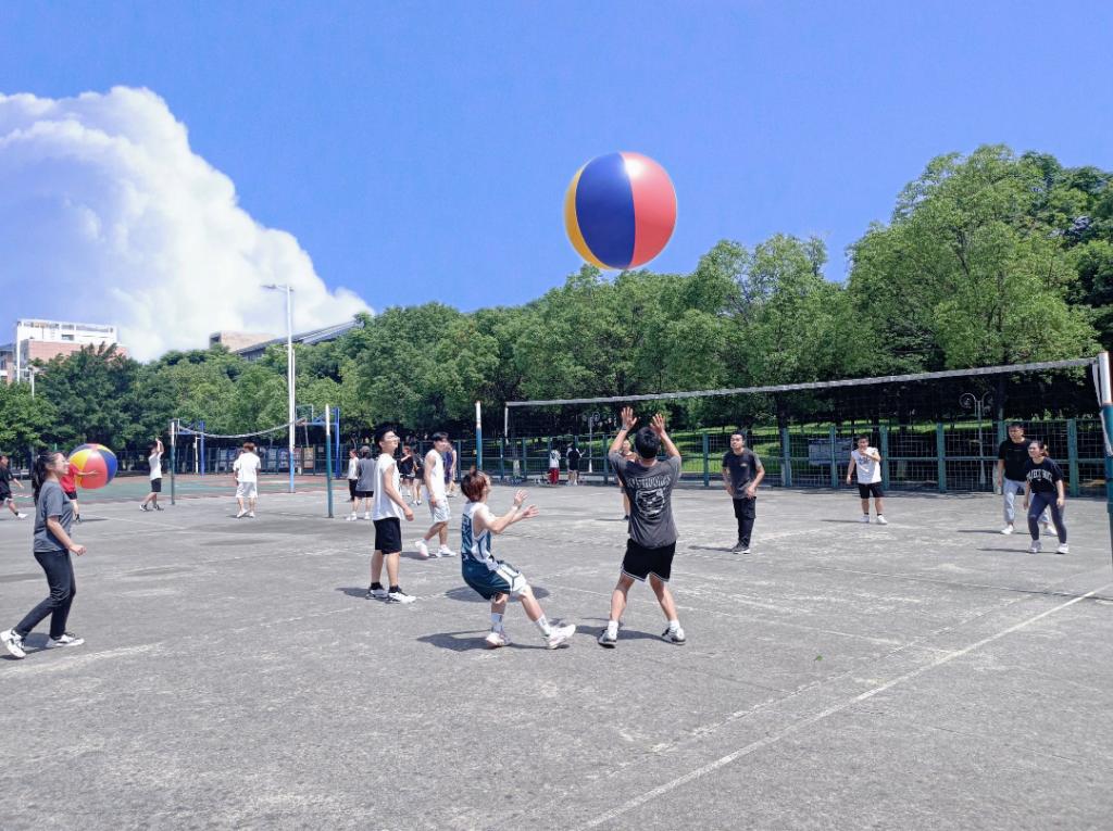自带搞笑基因的巨型排球,谁能不爱呢?一出现便引来同学们极大的兴趣,同学们你拍我打、顶着巨型气排球,动作挥洒自如,仿佛身在“小人国”,充满了欢乐。在比赛中,同学们朝气蓬勃、热情十足,各自施展排球绝技,一个个精彩的拦网,完成了一个又一个完美的配合,现场充满了欢乐的氛围。在吆喝声、拍打声、欢笑声中,呈现了一场又一场洋溢着青春、热血的精彩比赛,展示着同学们精彩的竞技风采。大家以球会友、以球联谊,在缓解学习和生活压力的同时,还更好地为同学们搭建良好的运动锻炼平台。