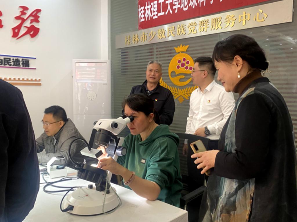 此外,教工第三党支部党员现场进行珠宝公益鉴定由支部党员免费为广大市民提供珠宝首饰鉴定及相关知识咨询。活动吸引了不少市民前来“鉴宝”,在公益“鉴宝”的同时,也普及了宝玉石基础知识,受到了市民的一致好评。